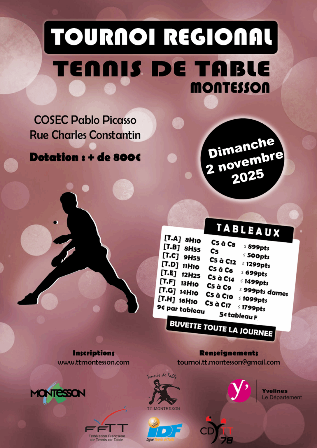 Le dimanche 2 novembre 2025 se tiendra le tournoi de tennis de table que toute…